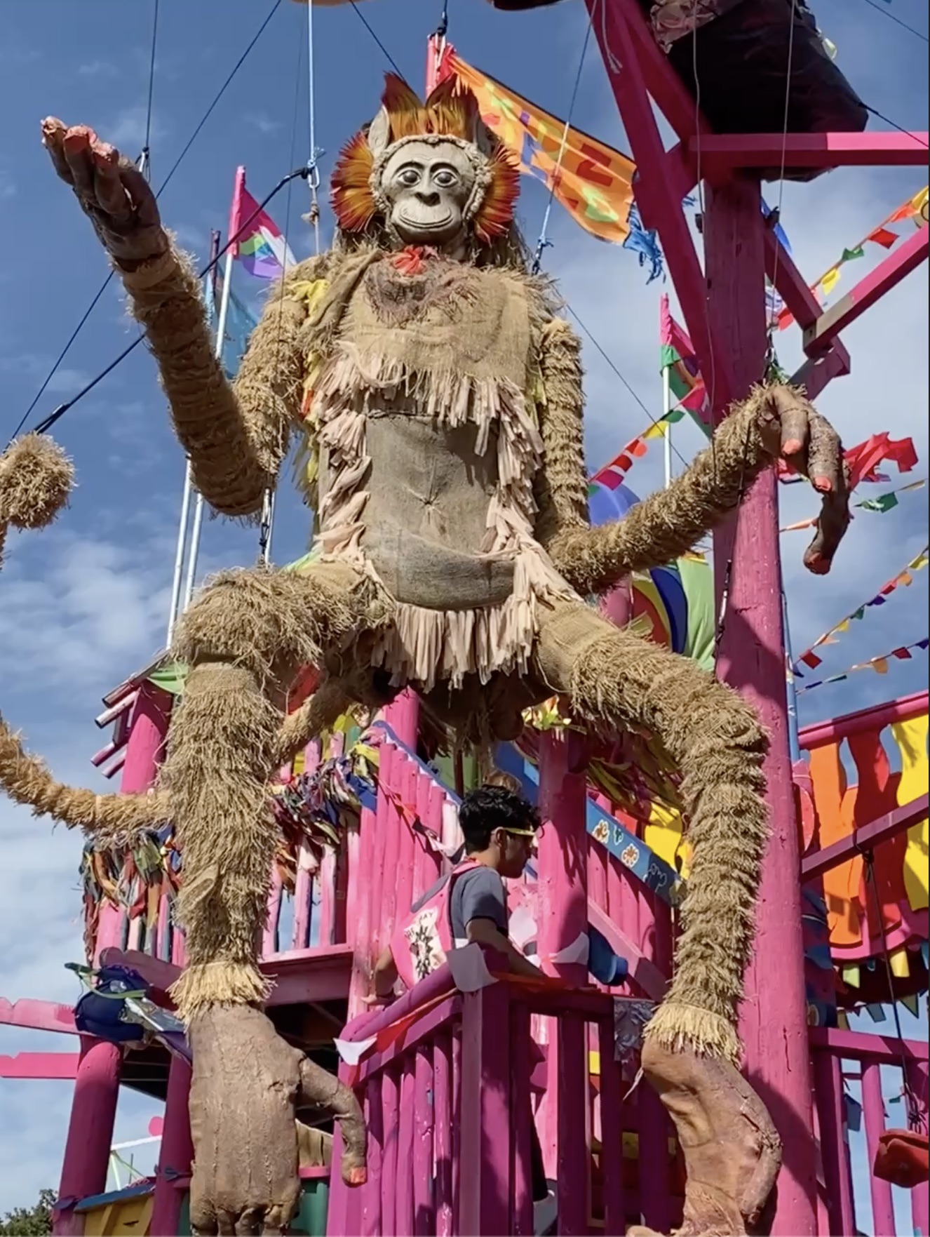 There are music lessons on all sorts of instruments, hands -on circus skills, art and crafts (which I have to admit that I avoid like the plague- lest I have piles of glittery cardboard to carry all the way home!) a HUGE marionette monkey to explore cause and effect with and the mechanics of levers and pulleys.